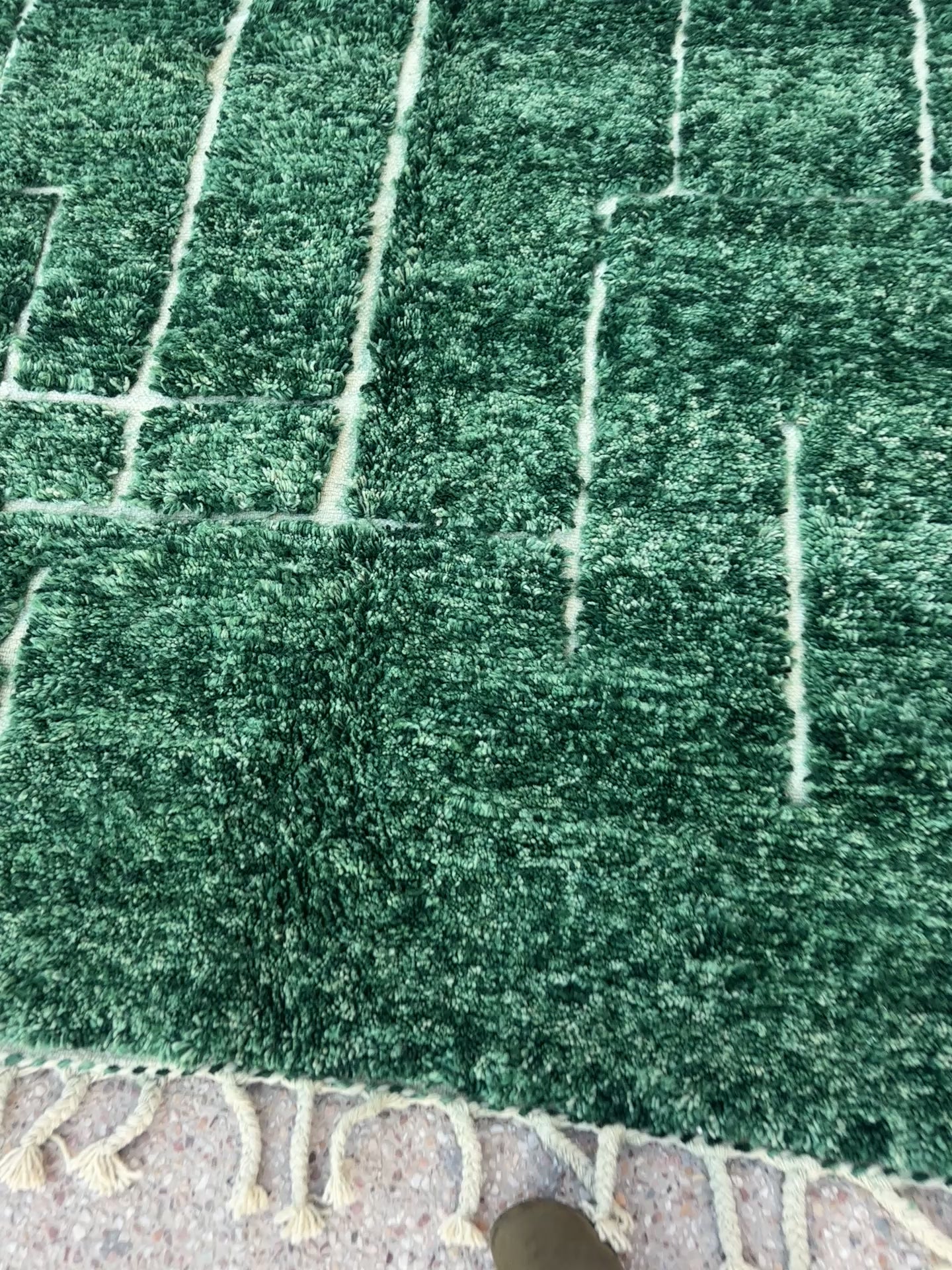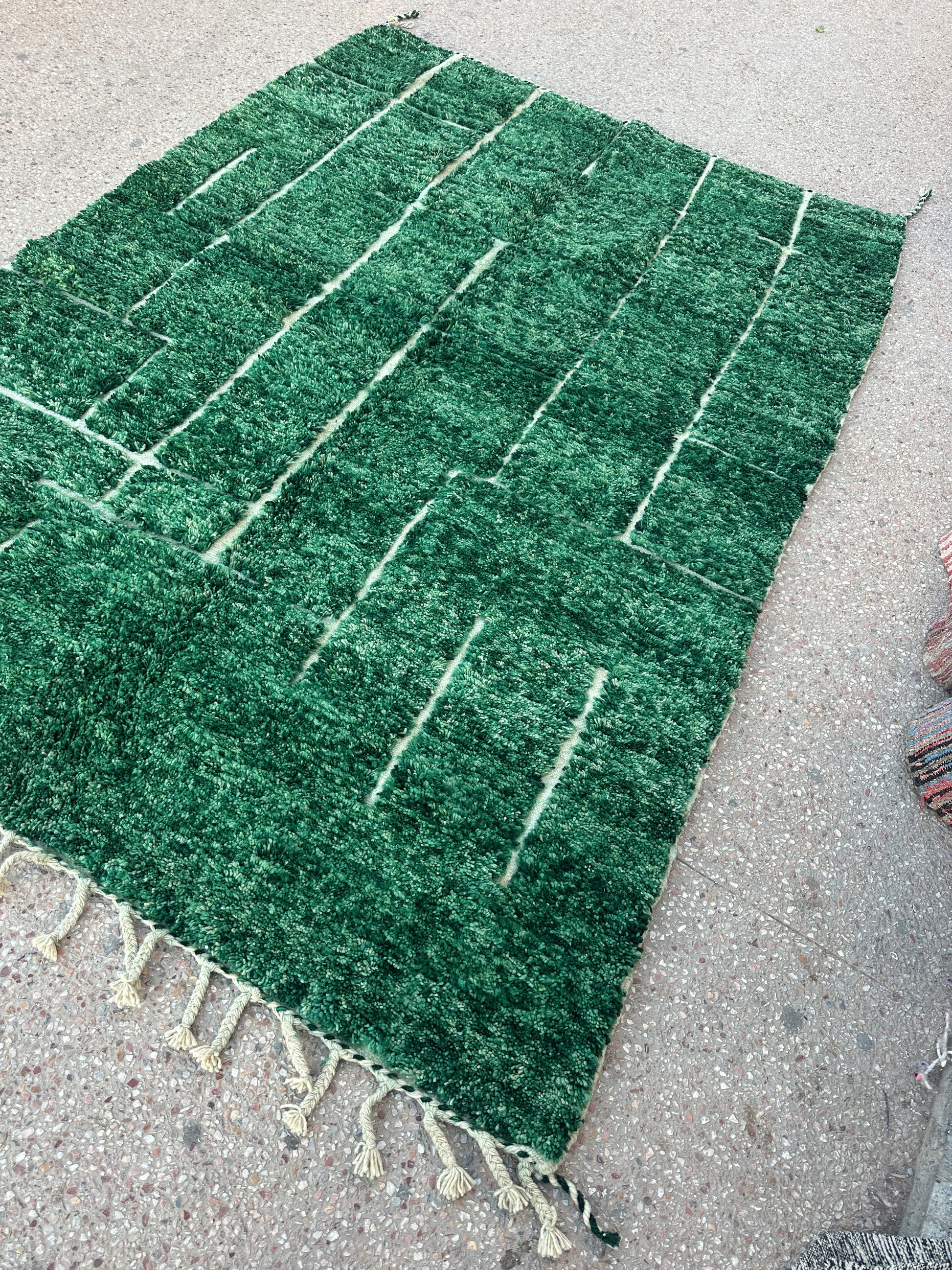 Once completed, each rug is washed and dried naturally in the fresh mountain air of Morocco, preserving its organic charm and ensuring the finest finish.