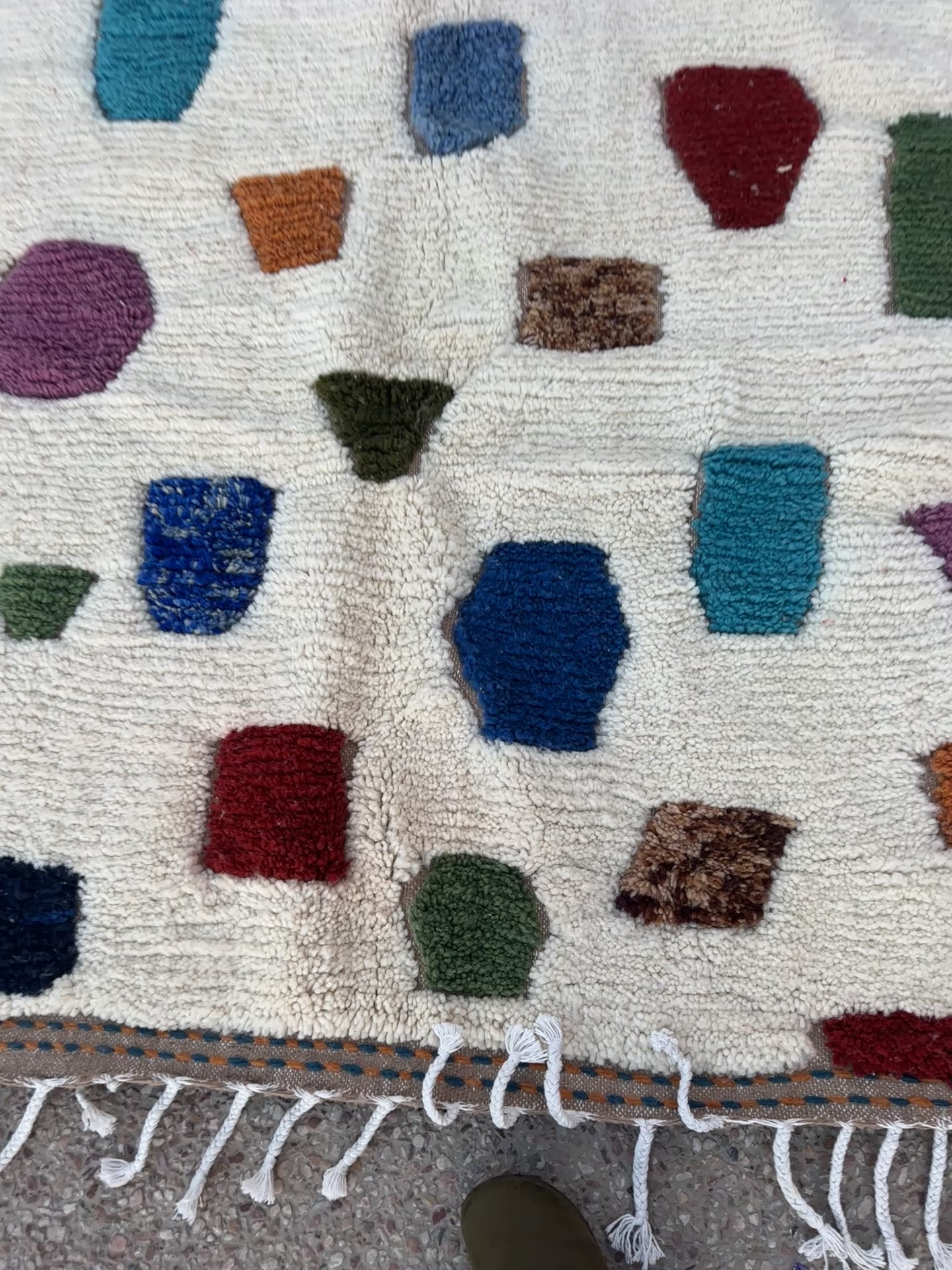 Once completed, each rug is washed and dried naturally in the fresh mountain air of Morocco, preserving its organic charm and ensuring the finest finish.